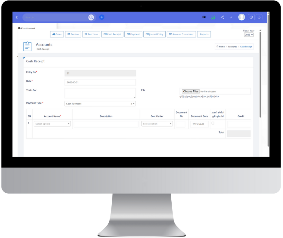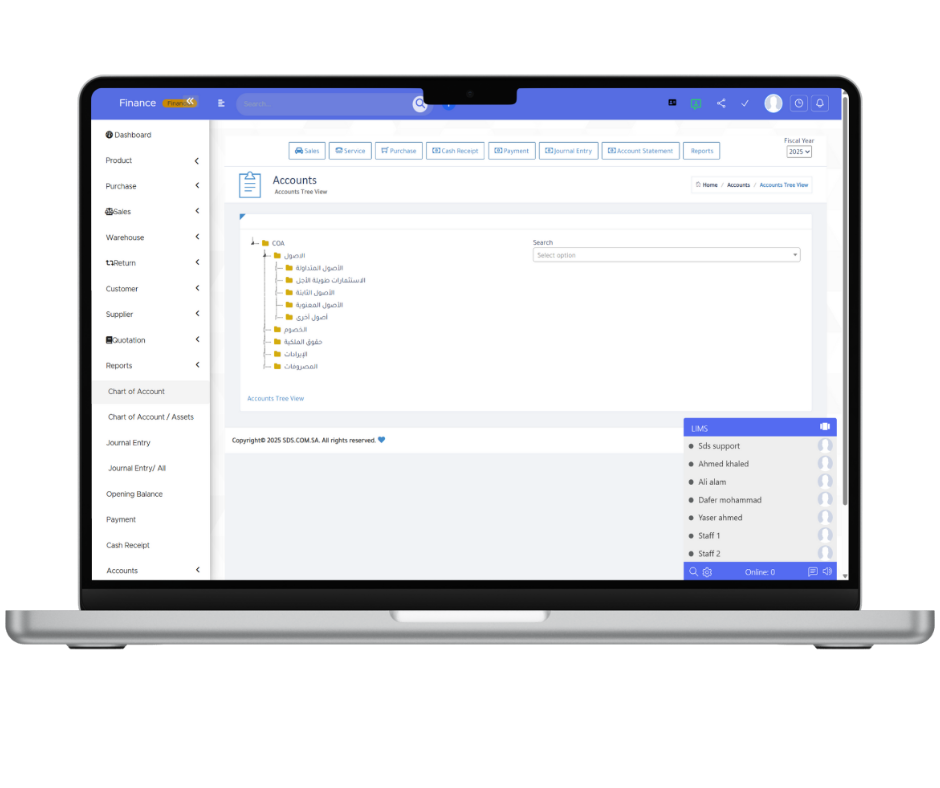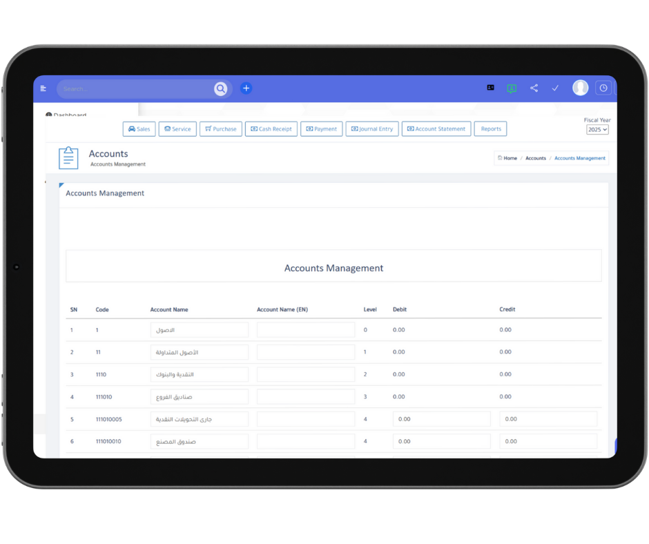 The system allows you to create the Chart of Accounts according to your needs, whether you are a contracting company, a factory, a trading company, or a service company, with unlimited levels and account settings.