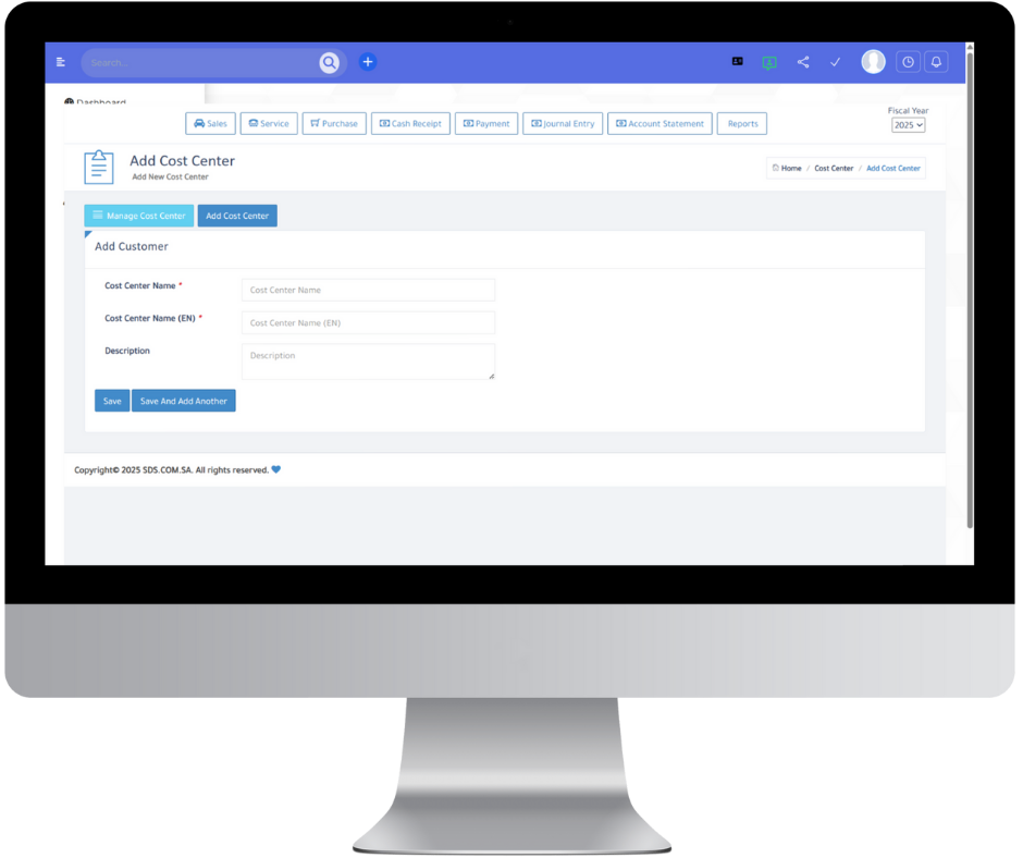 Cost centers play a key role in monitoring different units and projects in terms of profit and loss, as well as understanding expense details at the branch or project level. The system allows you to create unlimited cost centers, link them to projects, and analyze them at any time.
