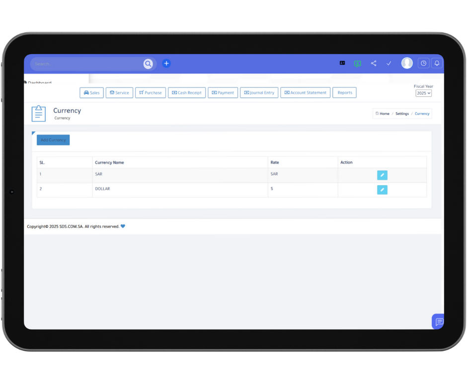 The system provides the ability to work with multiple currencies easily. You can issue purchase invoices in dollars, and the system will automatically convert them to Saudi Riyals.